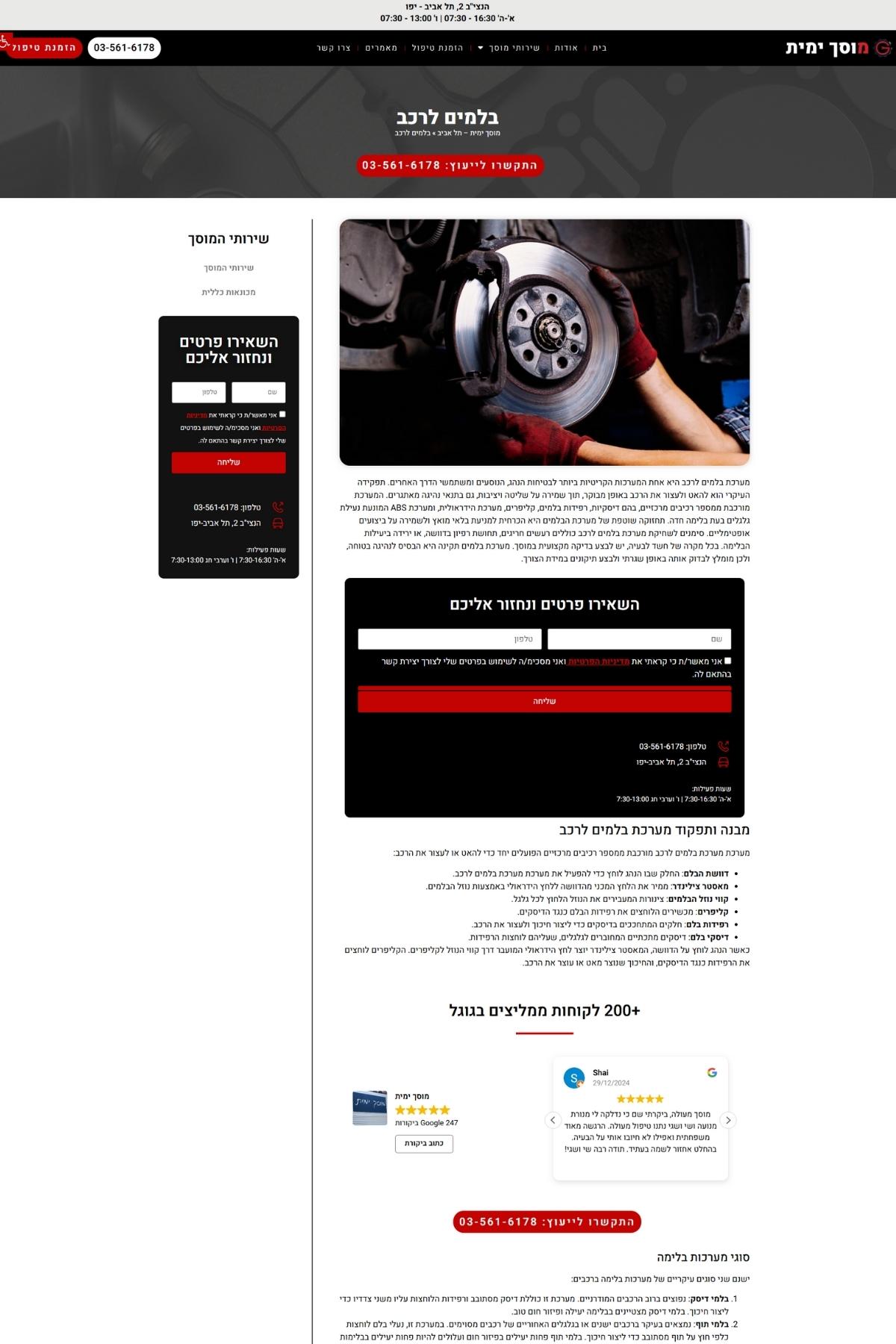 - PPC (ממומן): בקמפיינים ממומנים, העלות לקליק בתחום המוסכים בתל אביב גבוהה מאוד. היה צורך לוודא שכל גולש שמגיע לעמוד הבית או לעמוד שירות מבין מיד שהוא הגיע למקום הנכון ומשאיר פרטים.
